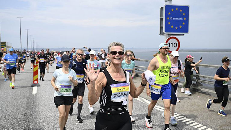 Environ 40 000 coureurs ont traversé le pont de l'Øresund qui relie la Suède et le Danemark. La structure est...