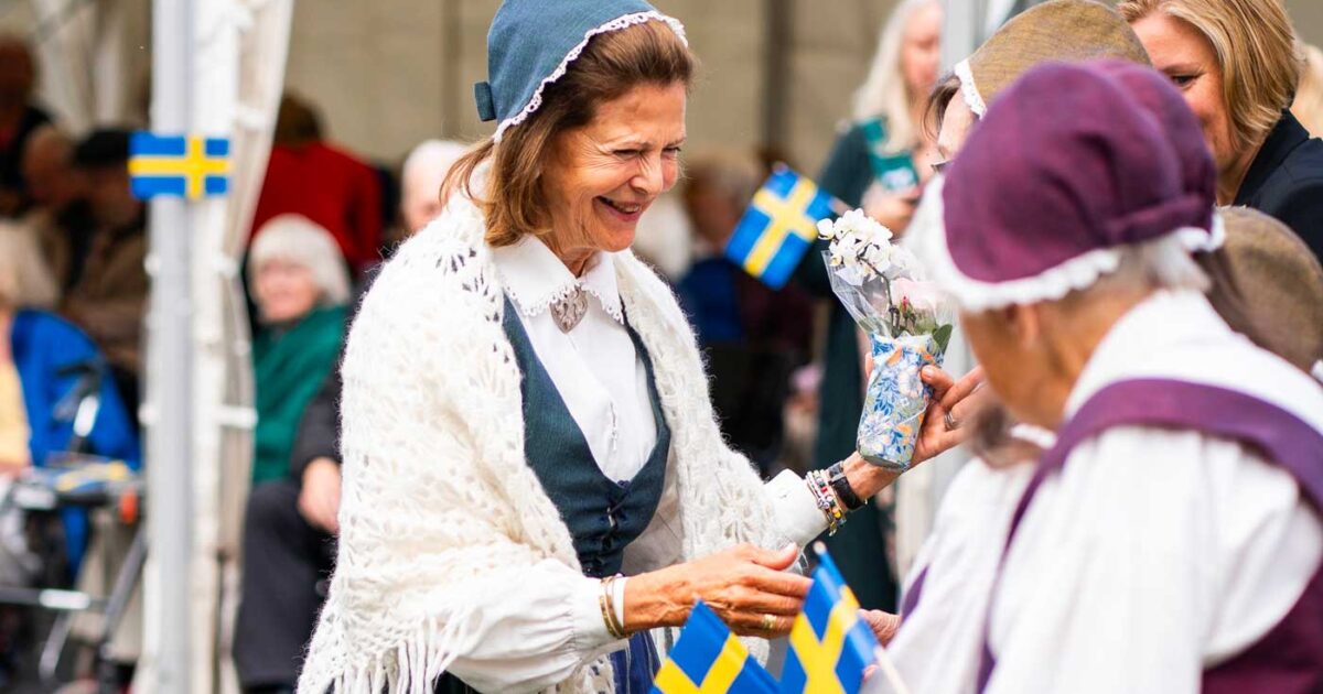 La reine Silvia partage un pique-nique avec les aînés d’Ekerö en tenue traditionnelle