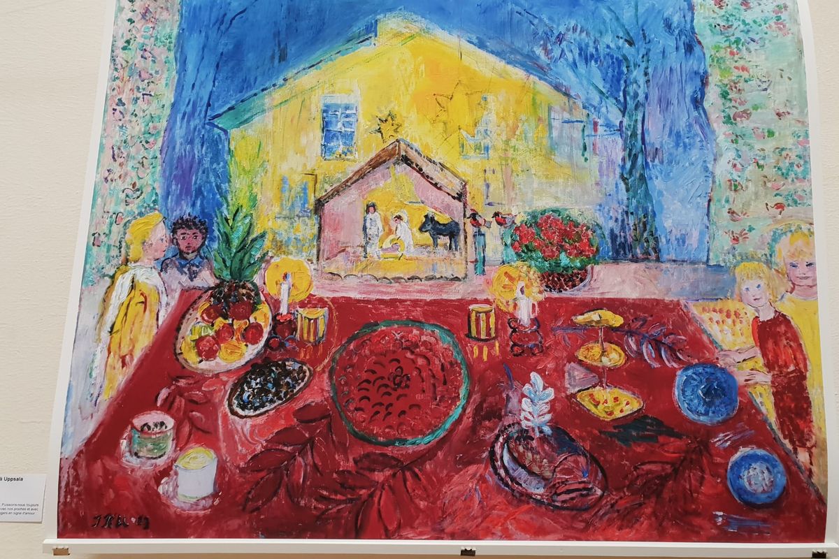 Cette exposition gratuite permet de découvrir le travail engagé et coloré, dans le style de Chagall, de cette artiste protestante, très reconnue en Suède.